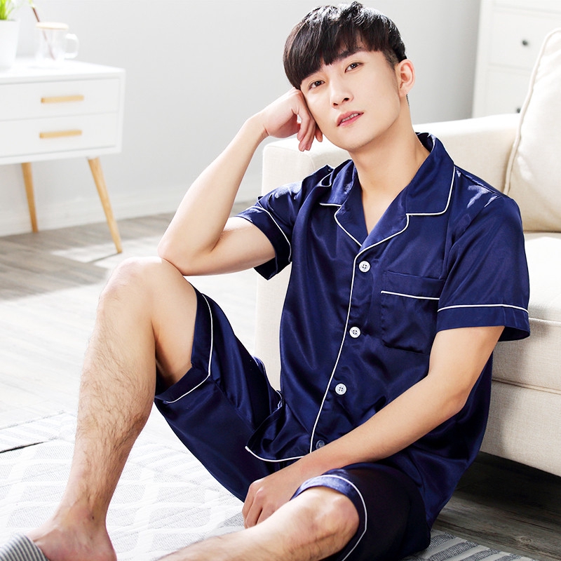 Lelaki Musim Panas Lelaki Dan Wanita Baju Tidur Pendek Lengan Pendek Seluar Pendek Baju Tidur Lelaki Dan Wanita Bahagian Nipis Sutera Ais Lapang Sutera Tiruan Pakaian Rumah Saman Shopee Malaysia
